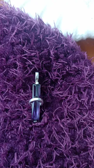 Elegante colgante con una piedra rectangular de un vibrante color morado, engastada en plata. - Diseño moderno y minimalista. - La piedra tiene un corte tipo baguette. - Cierre seguro para colgarlo en tu cadena favorita.