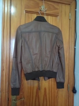 Chaqueta estilo bomber de Zara en color marrón. - Cierre de cremallera. - Cuello redondo. - Puños y bajo elásticos.
