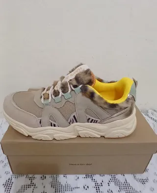 Zapatillas de la marca Gioseppo en talla 39. - Diseño con detalles en color plateado - Con adorno de pelo sintético. - Combinación de materiales y colores. - Suela de goma gruesa.