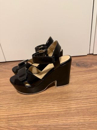 Sandalias de cuña de la marca Bimba y Lola. Tienen plataforma de 10cm y y ira ajustable al tobillo.
