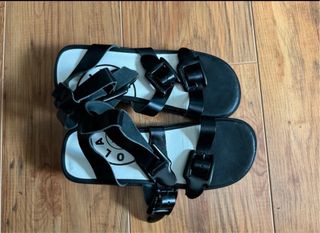 Sandalias de piel Bimba y Lola en color negro. Diseño moderno y elegante. Usadas 1 sola vez. Precio original 150. - Cierre con hebillas. - Tira en el tobillo. - Suela cómoda.
