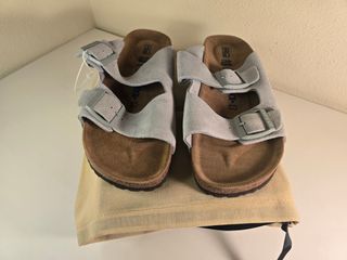 Sandalias Birkenstock Arizona, talla 46, en color azul. Están en muy buen estado, apenas usadas. - Cómodas y ligeras. - Perfectas para el verano. - Dos pares de sandalias.