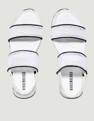Sandalias de tiras con diseño moderno. - Tiras de malla blanca con borde negro. - Cierre de velcro. - Suela cómoda.