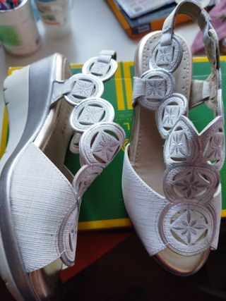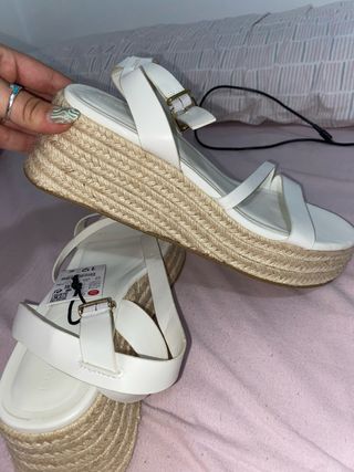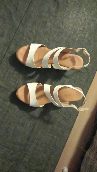 Sandalias de cuña de la marca Vizzano. - Tira delantera en color blanco. - Tira de tobillo ajustable. Poco uso