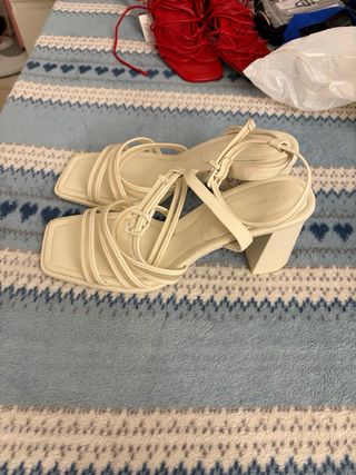Elegantes sandalias de la marca Zara, perfectas para eventos especiales. Novia o Invitada estan sin estrenar - Diseño con detalle de flor. - Tira fina en el empeine. - Cierre de hebilla. - Tacón fino de 10cm de alto
