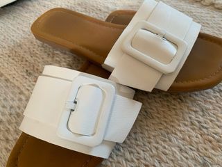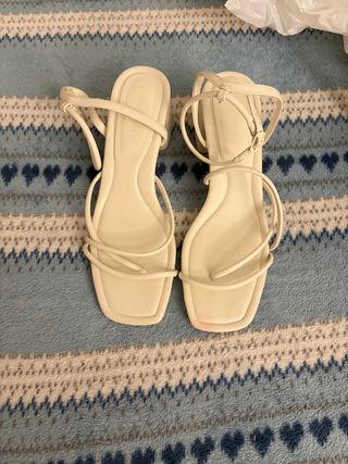 Sandalias de tiras blancas de Zara, talla 36. Un diseño moderno y elegante. - Tira del dedo. - Diseño abierto. - Tacón bajo.