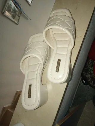 ¿Buscas el complemento perfecto para tus looks de verano? Estas sandalias tipo pala en color blanco son pura elegancia. El detalle de la flor en relieve les da un toque sofisticado y romántico que eleva cualquier outfit, desde un vestido vaporoso hasta unos jeans. * Estado: Nuevas a estrenar. * Color: Blanco puro con suela en contraste camel. * Comodidad: Plantilla acolchada con pespuntes vistos para mayor confort al caminar. * Talla: 38 ✨ ¡No las dejes escapar! Son ideales para eventos, paseos o para ir ideal este verano.