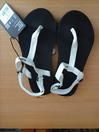 Sandalias unisex de la marca ECOALF, perfectas para el día a día. - Color principal negro con detalles en blanco. - Talla 37. - Diseño moderno y cómodo.