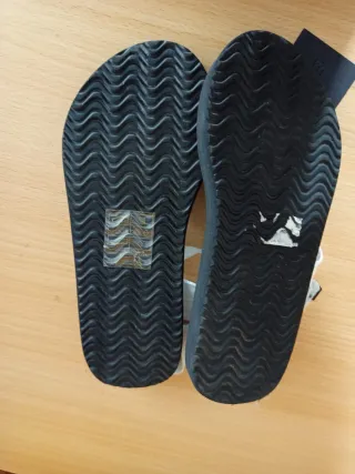 Sandalias con un diseño moderno y cómodo. - Tiras negras con detalle brillante. - Suela blanca de cuña. - Detalle de logo en la plantilla.