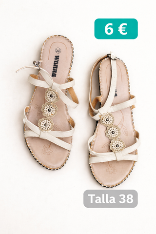 Sandalias blancas para mujer, talla 38. Poco usadas y en buen estado, muy cómodas y ligeras. Diseño elegante con detalles florales. Ideales para verano, diario o vacaciones. 📏 Talla: 38 💶 Precio: 6 € 📦 Entrega en mano o envío por Wallapop