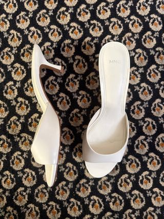 Elegantes zapatos de tacón bajo de Mango. - Diseño abierto. - Tacón fino. - Usados solamente una vez El zapato derecho tiene un pequeño rallado en un lateral, pero no se ve mucho, es sutil.