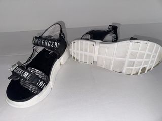 Sandalias de la marca Bimba y Lola. - Diseño en color blanco y negro. - Detalle de nudo en la pala.
