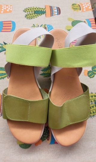 Sandalias verdes y blancas mujer
