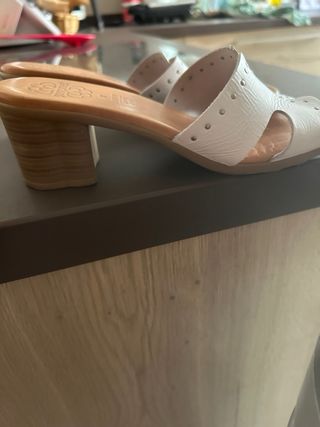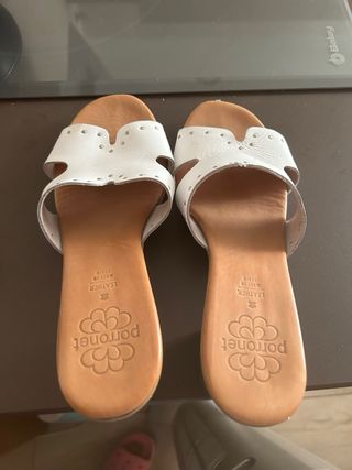 sandalias practicamente nuevas, de porronet , la tira blanca es de piel, con suela acolchada.