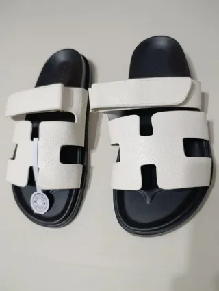 Sandalias de la marca Hermes con un diseño moderno y elegante. - Tira superior en color blanco. - Suela en color negro. - Detalle de H icónica en la tira. - Talla 39 EUR
