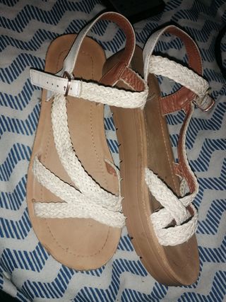 Sandalias piel nº39 suela gruesa sin estrenar con hebillas para adaptar a la medida del pie.
