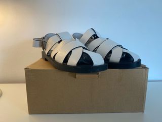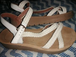 Sandalia cangrejera de piel de color blanco, talla 39, como nuevas, usadas solo un día.