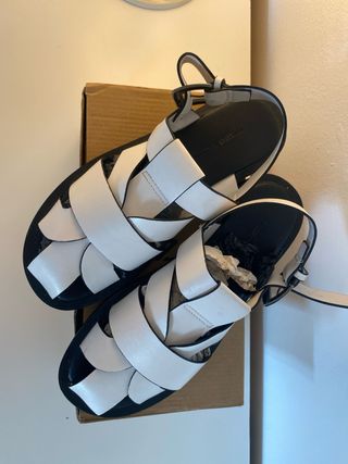 Sandalias blancas de Pull & Bear, talla 37. Diseño de tiras entrecruzadas. Suela negra. hsadas una unica vez !
