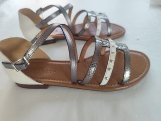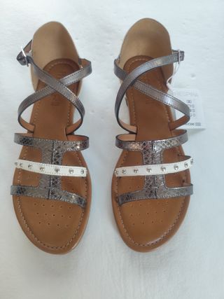 Elegantes sandalias Geox para mujer. - Diseño en color plata y blanco. - Tiras con detalle de tachuelas.
