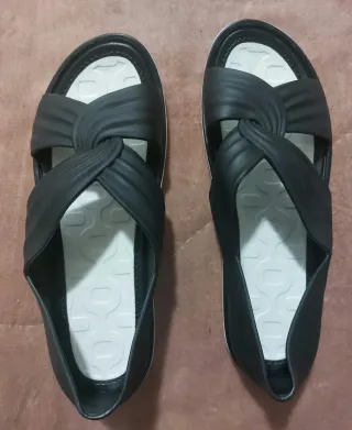 Sandalias negras con diseño de tiras entrecruzadas talla CN40 de Shein para mujer. Son más bien un 39. Cierre de velcro. Suela blanca con un poco de cuña para más comodidad. Suela nueva, solo se han usado para unos días de trabajo en un centro comercial. Nunca han paso la calle. Solo hay que limpiarlas y como nuevas. Medidas exactas en las fotos del anuncio. Más ropa, calzado, complementos y mucho más en mi perfil. Poco a poco iré subiendo muchas cosas más. Échale un vistazo y sígueme para enterarte de las novedades!!!! Cualquier cosa preguntame por mensaje privado sin compromiso!!