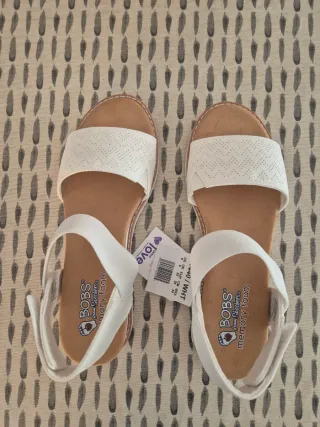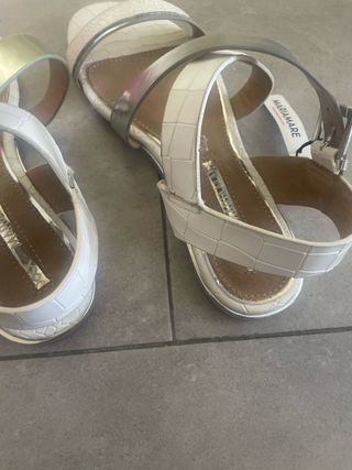 Vendo sandalias de mujer, color blanco. Totalmente nuevas a estrenar como se aprecia en las fotografías. La talla real es una 40, no la que pone.