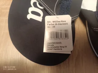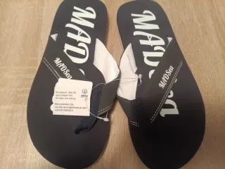 Chanclas de la marca MADSea en color negro con detalles blancos. Perfectas para la playa o la piscina. - Diseño con el logo MAD en la suela. - Tira de sujeción con el nombre de la marca. - Incluye etiqueta informativa. - talla 38