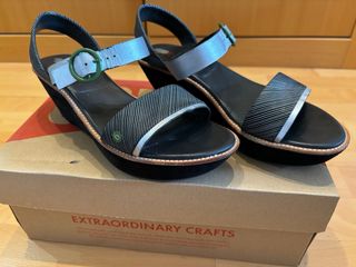 Sandalias Camper de tacón, en azul y negro. Ideales para cualquier ocasión. - Diseño elegante y cómodo. - Tacón de altura media. - Material de alta calidad. - Perfecto estado.