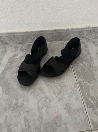 Sandalias planas Camper de mujer, color negro. Son elegantes y cómodas. - Diseño de tiras cruzadas. - Material de la suela: goma. - Perfecto estado.