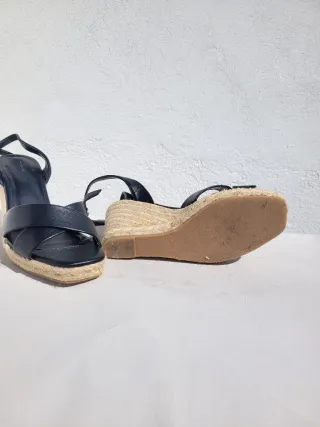 Sandalias de cuña cerradas con un diseño elegante. - Material exterior de cuero. - Cierre con tiras para atar al tobillo. - Suela de esparto. - Plataforma delantera. PRECIO EN TIENA FISICA: 45,99€ NUEVO A ESTRENAR CON SU CAJA Y ETIQUETAS DE FABRICA LIQUIDACION STOCK ALMACENES.