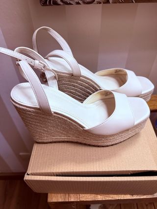 Sandalias de cuña de la marca Stradivarius en perfecto estado. - Diseño de tiras. - Plataforma forrada de esparto.