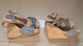 Conjunto de dos sandalias de cuña de esparto de la marca Gaimo Espadrilles t.37. - Diseño con nudo en la pala. - Cierre de tira al tobillo. - Cuña de esparto.