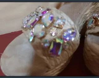 Sandalias de cuña con un diseño elegante y detalles brillantes. - Tira frontal cruzada con pedrería. - Correa ajustable al tobillo. - Cuña con acabado de esparto.