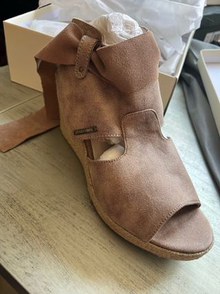 Sandalias de cuña de la marca Chattawak. - Diseño abierto en la punta. - Detalle de lazo en la parte superior. - Material con acabado ante. - Suela de esparto.
