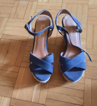Sandalias cuña azul y marrón talla 38