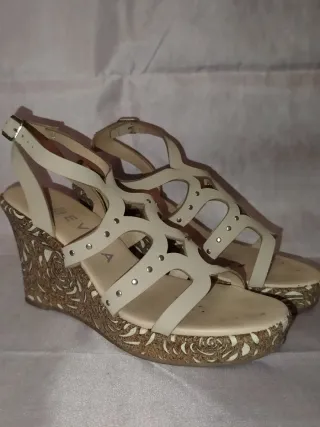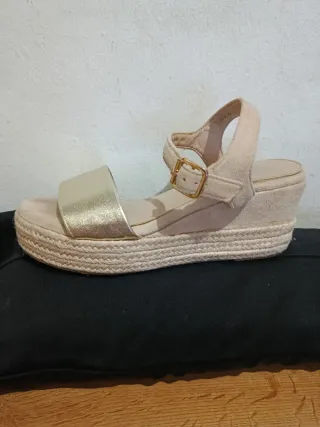 Sandalias cuña beige y doradas talla 39/40