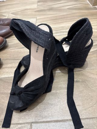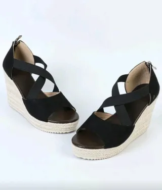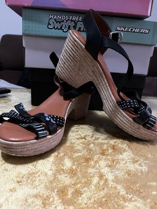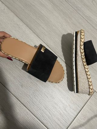 Sandalias cuña negras y beige sin estrenar