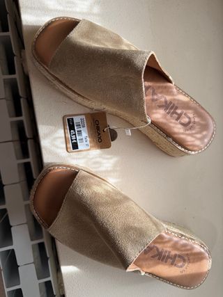 Sandalias de cuña de la marca Chika10, nuevas y sin usar. - Diseño abierto. - Plataforma con acabado de esparto. - Pala de ante.