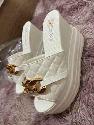 Sandalias cuña Miss doradas y blancas