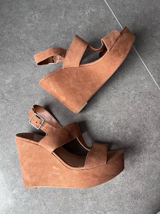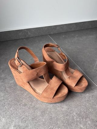 Plataformas cuña tacón marrón talla 35