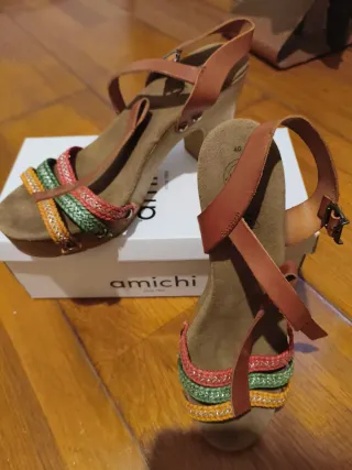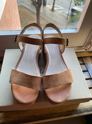 Sandalias cuña marrón talla 39