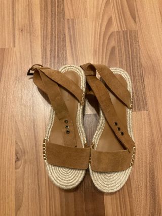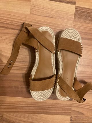 Solo usada un rato para una boda, pero eran muy altas para lo que suelo usar y ya no se ha usado mas.Sandalias de cuña altas con un diseño moderno y cómodo. - Material exterior de ante. - Correa ajustable al tobillo. - Plataforma y cuña forradas de esparto.