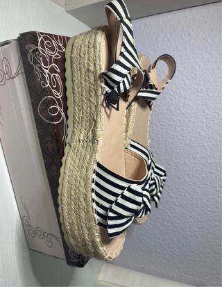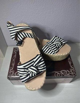 Sandalias de cuña con lazo rayas