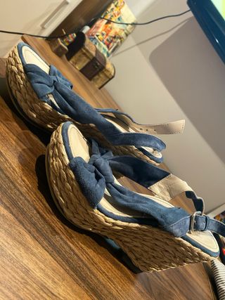 Sandalias plataforma de color azul marino. Ideales para verano. - Son de ante. - Tienen cuña de esparto. - Son de estilo casual.