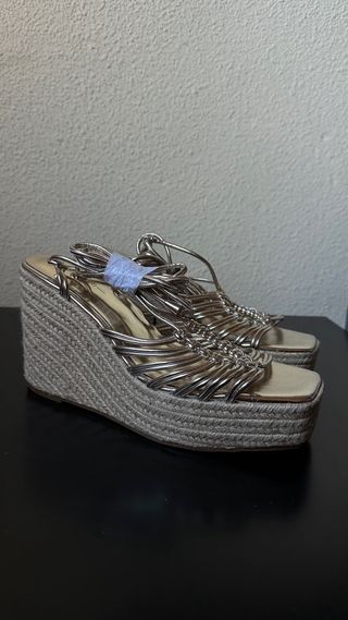 Sandalias Zara Tacon Cuña Dorado/Plateado
