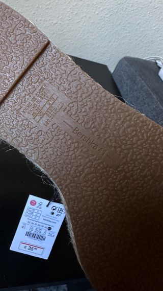Sandalias de cuña con tiras cruzadas en la parte delantera y detalle de esparto. - Tira ajustable al tobillo con hebilla dorada. - Plantilla con diseño grabado. - Material exterior con acabado dorado y beige. en las fotos no se ven bien son mucho mejor q en las fotos