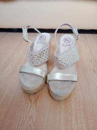 Sandalias de cuña doradas de segunda mano Alcobendas