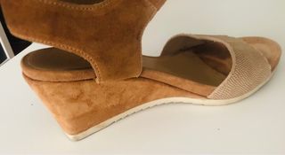 Sandalias de cuña prácticamente nuevas. Dos usos. Color natural y dorado, con velcro intacto. Número 39. Marca Alpe woman