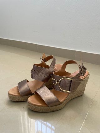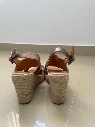 Sandalias de cuña de esparto en color dorado. Poco uso. Talla 38.