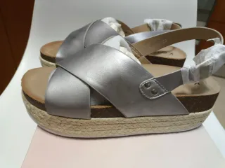 Sandalia de cuña color plateado (muy comodas) talla 37