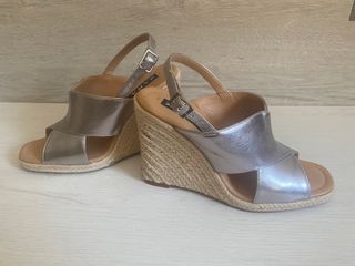 Sandalias tacon tipo cuña de yute, plateadas y con correa en talon. Están como nuevas